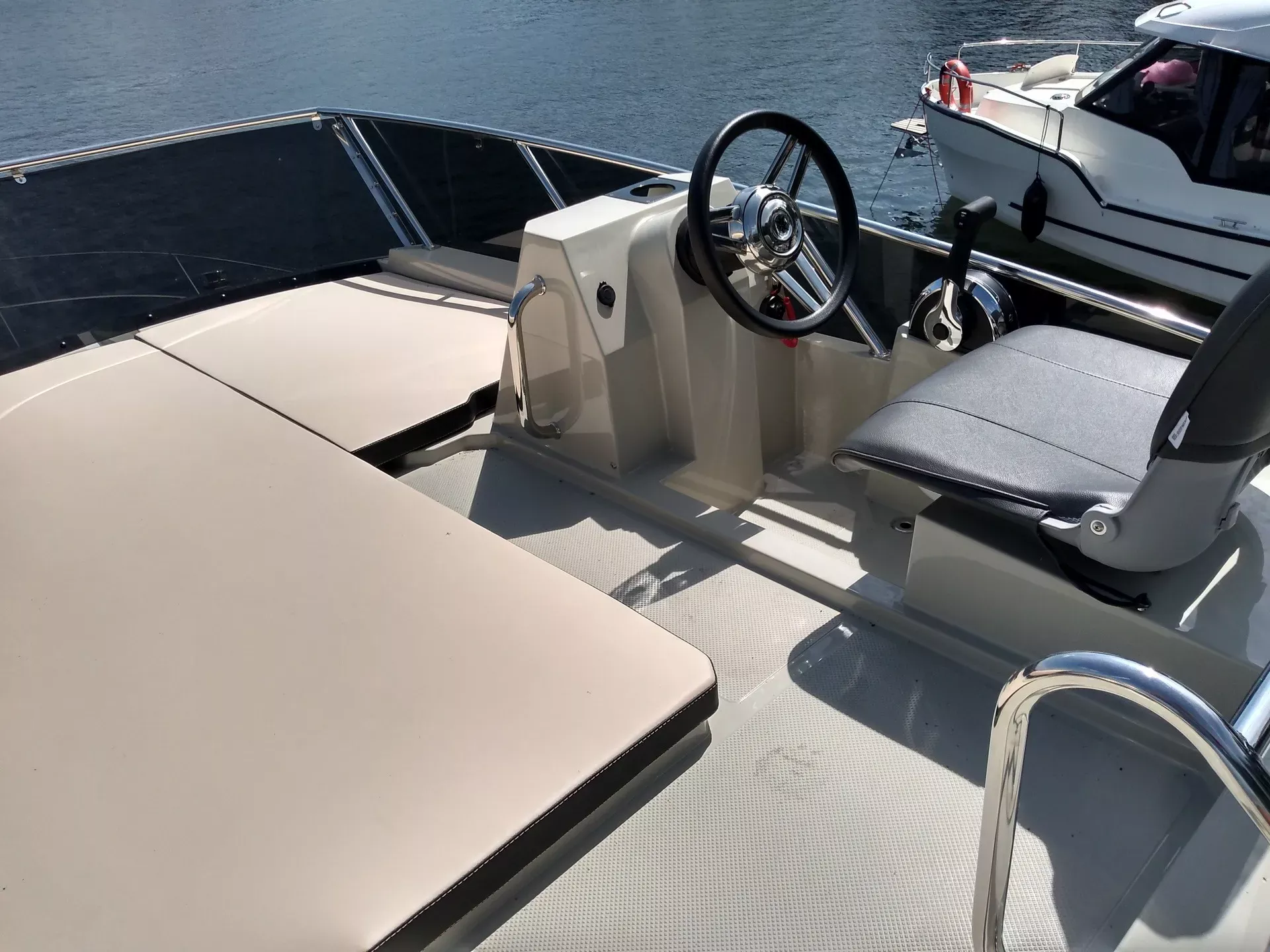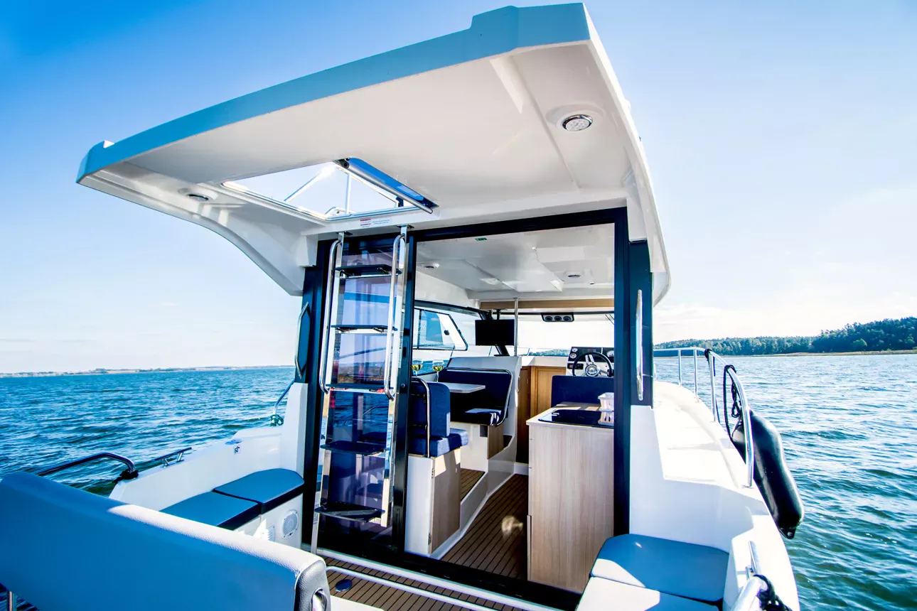 A jacht így egyszerre sportos, praktikus és letisztultan elegáns, ami különösen vonzóvá teszi azok számára, akik a vízen szeretnének minőségi időt tölteni – akár aktívan, akár pihenéssel.