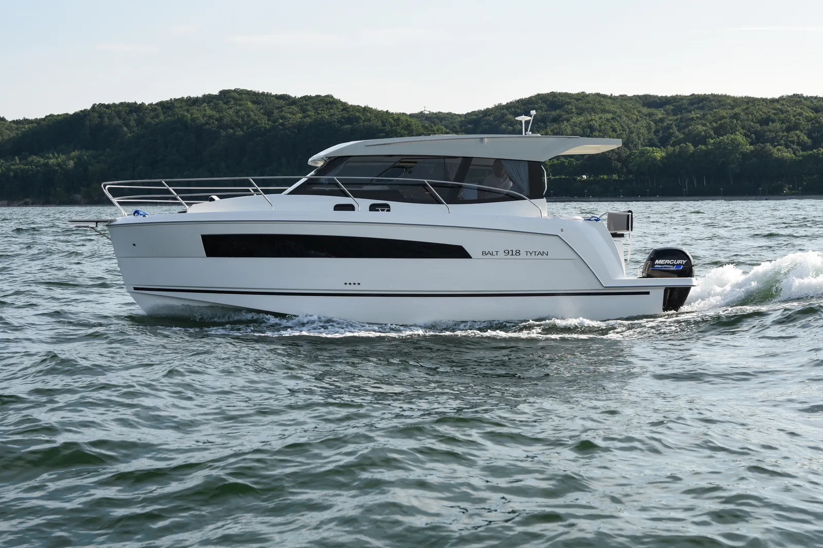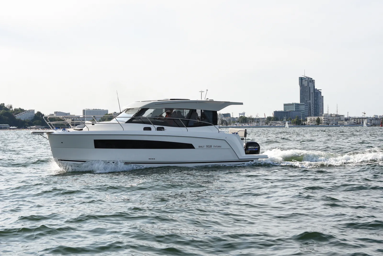 A BALT 918 TITANIUM egy félsiklótestű túrahajó, amely a felső szinten tágas nappalit, valamint egy nagy, ülőhelyekkel rendelkező kokpitet kínál. A hajó tervezésekor a felhasználók igényeit tartották szem előtt – számukra nem a hajó mérete a lényeg, hanem annak praktikussága, amit az átgondolt megoldások, a jó térkihasználás, a manőverezhetőség és az elegancia egyensúlya biztosít.
